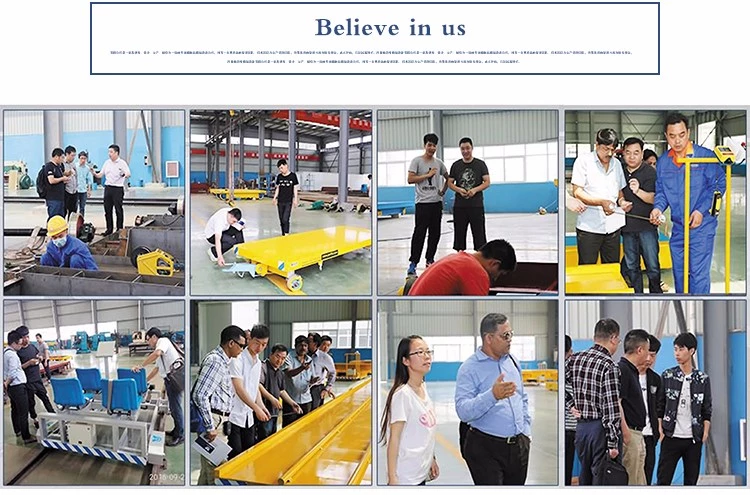 The railcar is electromagnetically braked and powered by a battery. The customer has a track on site, and only needs to put the flatbed into the track to work.